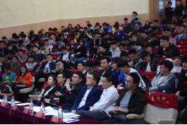 本次比赛共有十支队伍进入决赛,每三小组比赛完后报一次比分。每支参赛队伍有十分钟对自己的作品进行展示汇报,其中ppt汇报时间6分钟,现场答辩4分钟。他们在这十分钟内,向评委和观众展现出一个个新意十足的轻应用app。在比赛期间,还有易班进行抽奖活动,在动态墙和易班评论的同学中随机抽取并送出精美礼品,为此次大赛增加了趣味性。