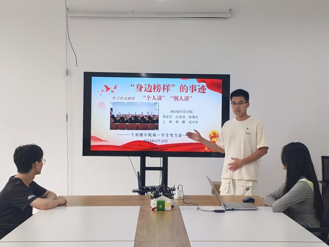 支部以案促学,组织党员观看警示教育片《决不姑息》第一、二集,开展“品读红色经典 唱响红色旋律”之红色故事微党课。武丹彤、方禹同志分别以《“杨根思连”的三个不相信》《一等功臣—陈祥榕》为主题展开,激励党员同志传承红色基因,弘扬革命精神,以攻坚克难的勇气、敢闯敢试的锐气、持之以恒的志气谱写青春篇章。郭光彬、周春同志讲述大数据学院2023届毕业生党员的先进事迹,激励大家向榜样看齐,争做时代先锋,充分发挥模范带头作用。