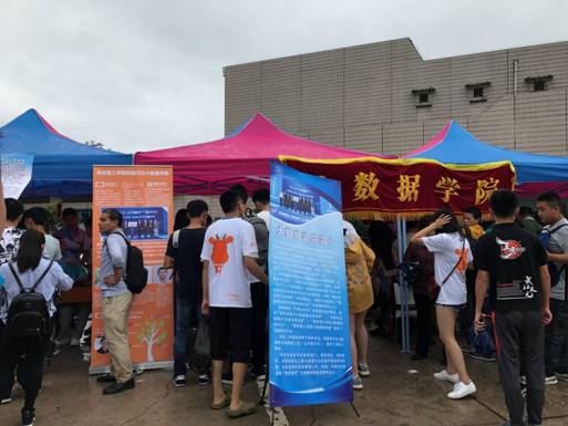 (大数据 蒋昀瑶)2017年9月2日上午8点,迎接2017届大数据学院的新生的工作还在如火如荼地进行着。大数据学院的迎新工作无疑是全校的佼佼者。不断前来的大数据学院新生,让各小组的老师和志愿者们忙得不亦乐乎,分别在各处维持秩序,为有疑问的新生细心解答,报道处的各个环节依然有条不紊地进行着。每一个环节都会有老师或者志愿者陪同,每一个步骤都会有人来辅助,高效的办事效率,亲切的待人态度,很快就建立了新生及其家长对大数据学院的学生以及老师的认可和信赖。