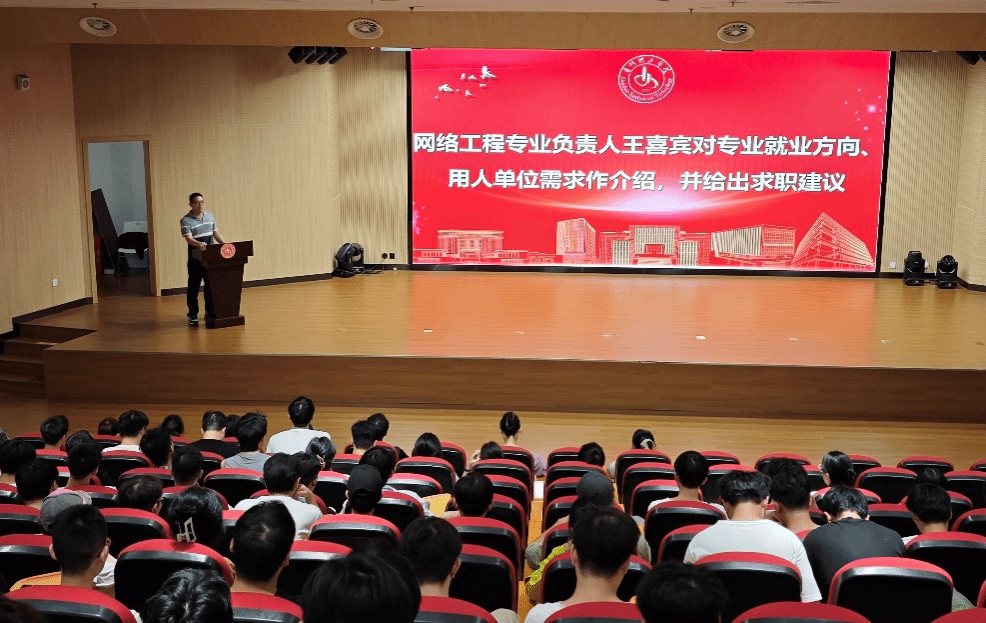 副院长王喜宾结合网络工程、网络空间安全专业特点,分析学院近年就业数据,提醒同学们端正求职思想、筑牢就业信心,明确职业发展方向,提前打磨简历,提升技能,抓住秋招关键期早就业、就好业。