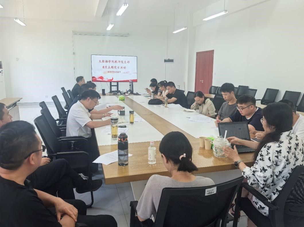 本网讯(大数据学院 文/图 陈晖)2025年8月28日,大数据学院教师党支部在睿知楼510会议室开展“纪念中国人民抗日战争暨世界反法西斯战争胜利80周年”主题党日。支部书记夏雍主持会议,教师党支部党员参加。