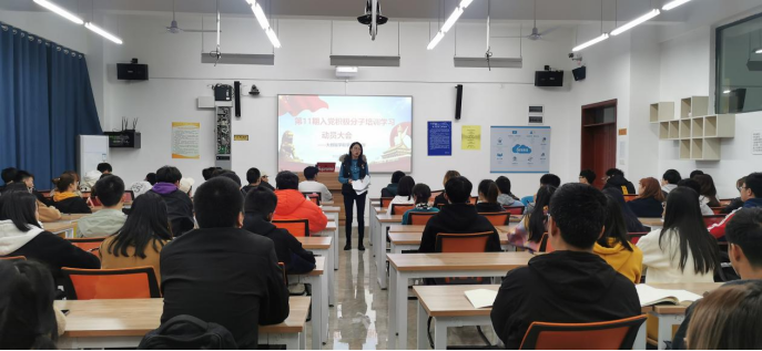本网讯(大数据学院王玖睿/文 王 倩/图)为扎实做好发展党员工作,加强入党积极分子对党的基本理论知识的系统学习,进一步端正入党积极分子的入党动机,深入践行中国共产党“全心全意为人民服务”的宗旨。在我校第11期入党积极分子培训班即将开班之际,大数据学院学生支部于2021年4月8日晚在知行楼3302教室开展第11期入党积极分子培训动员大会。大数据学院全体入党积极分子参加,支部书记石春梅主持会议。
