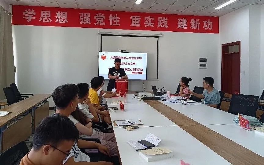 会上开展了爱心募捐活动。支部党员以实际行动为家庭遭遇突发困难的网络194班邓龙飞同学伸出援手,共解难事。