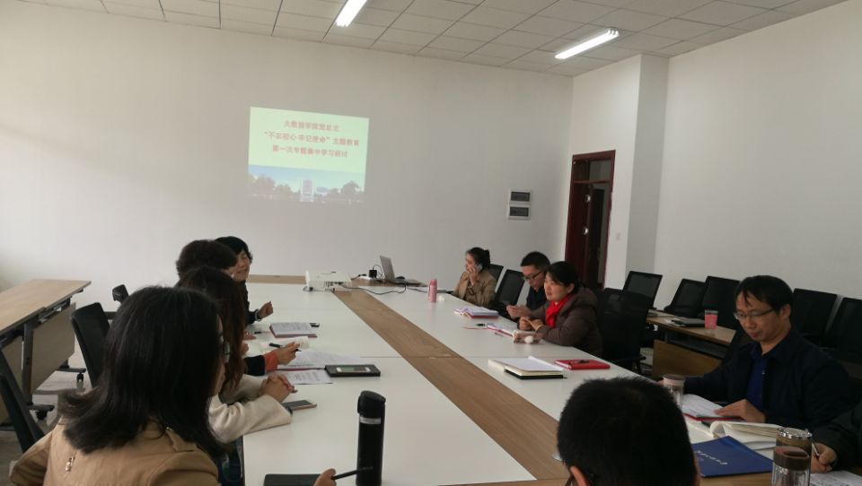 根据《关于近期“不忘初心、牢记使命”主题教育的工作提示》(贵理工教组发[2019]18号)文件要求,大数据学院党总支制定了《大数据学院党总支中心组“不忘初心、牢记使命”主题教育第一次专题集中学习研讨方案》, 于2019年10月24日10:10至12:30,在学院会议室开展党总支中心组第一次集中学习和研讨,学校第三巡回指导组成员李永、学院班子成员、各科室负责人共10人参加了学习。学习和研讨由党总支副书记史明华主持。