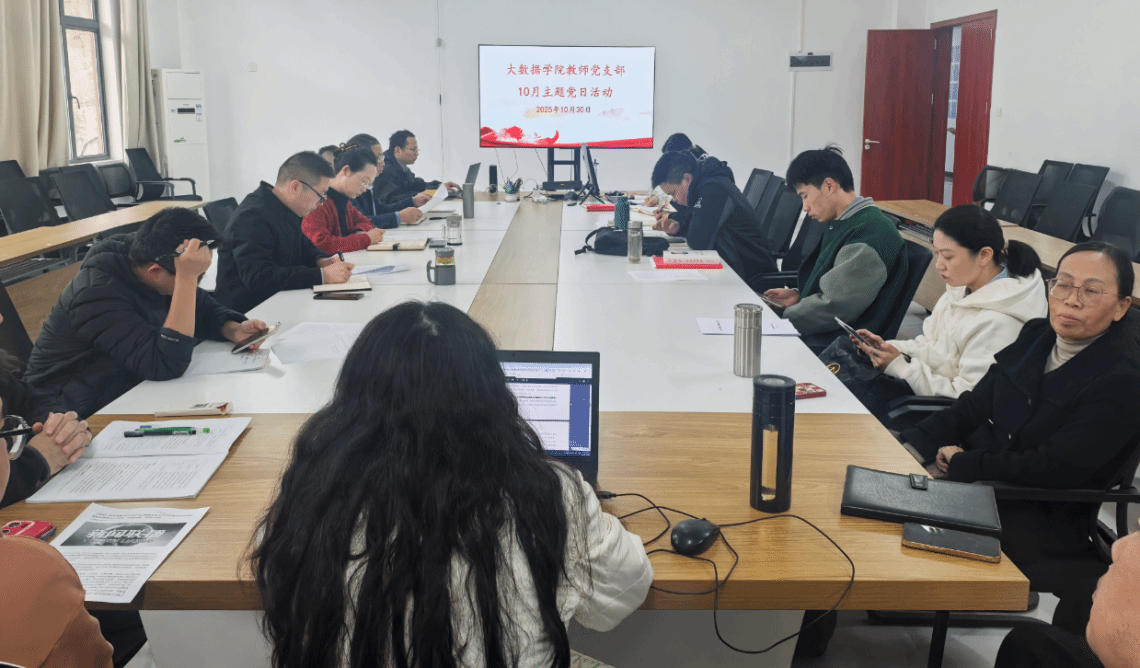 本网讯大数据学院 文/图 陈晖)2025年10月30日,大数据学院教师党支部在睿知楼510会议室开展“深学细悟党代会精神,凝心聚力为审核评估贡献力量”主题党日。支部组织委员彭智育主持会议,支部党员参加。