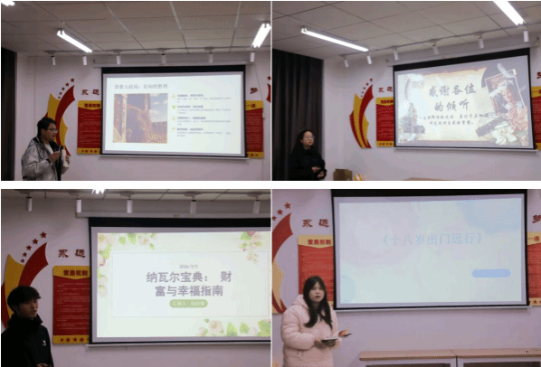 分享会上,同学们结合精心制作的PPT,畅谈《人性的弱点》《纳瓦尔宝典:财富与幸福指南》《十八岁出门远行》等书籍读后感,工整的笔记与生动的展示相得益彰,思想火花与阵阵掌声此起彼伏,充分展现了大数据学子爱读书、善思考的精神风貌以及互学互鉴的良好氛围。