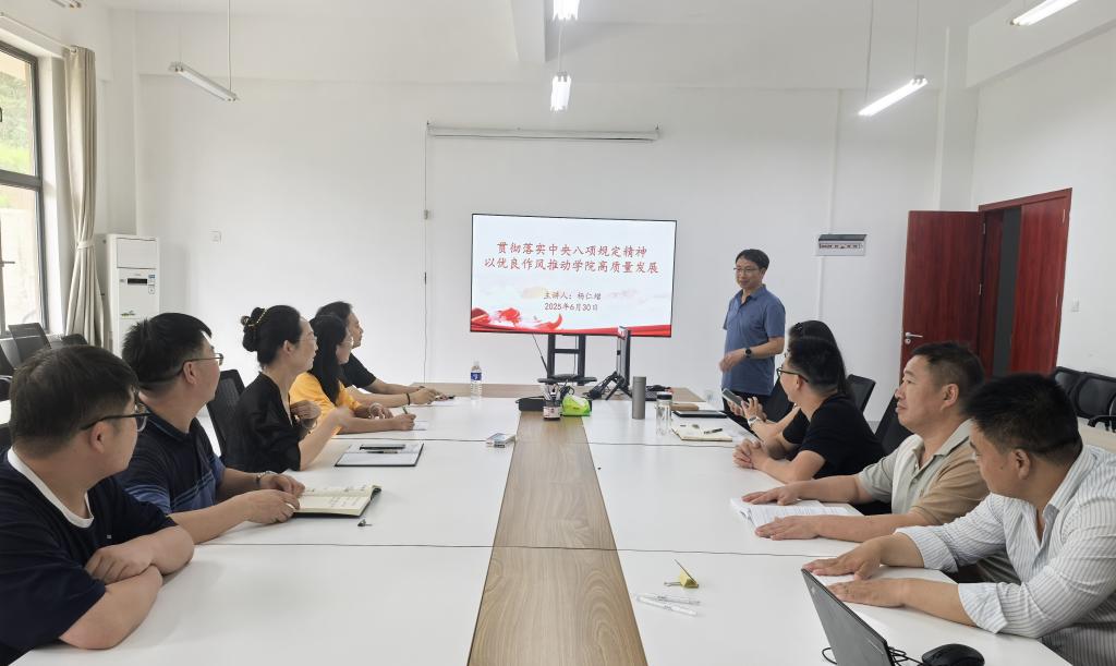6月30日,副院长杨仁增以《贯彻落实中央八项规定精神 以优良作风推动学院高质量发展》为题,在学院510会议室面向大数据学院教师支部党员、各科室、教研室、信息实验中心负责人讲授专题党课。