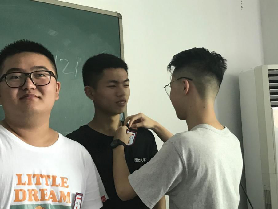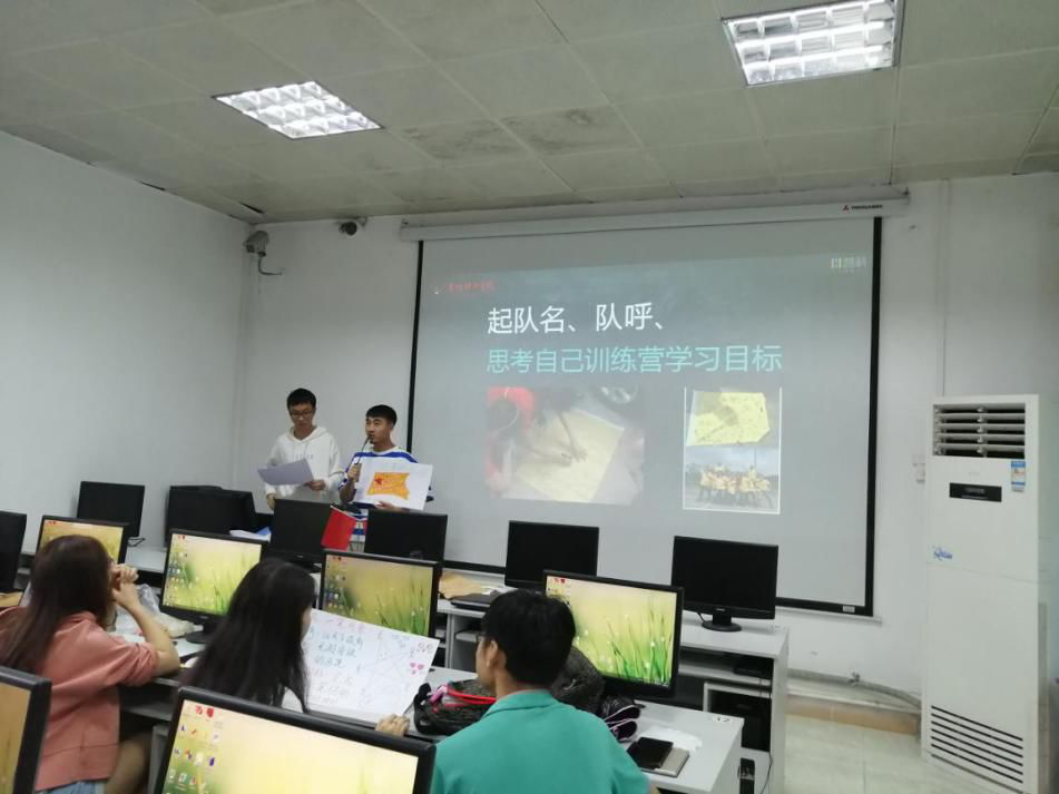 开营仪式后,同学们按照EMO模式的要求,进入项目组分组环节,在班内进行了自由组队,每五个人为一个小组,并选出本组的队长,确定团队成员职责,设计团队口号、队旗。在组好团队后,由团队成员代表上台为自己的组长进行授勋。EMO助教为同学们讲解了训练营的规则,教学团队将严格按照EMO模式的规则对同学们在训练期内的表现进行评分,对同学们进行指导,希望同学们积极与老师互动,争取为团队加分。