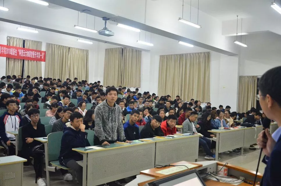 为进一步加强2018级校企合作新同学们对专业学习目标的明确,了解所学专业及其应用前景等信息,10月16日晚,来自阿里云的解决方案构架师——饶正伟老师为2018级新生举行了“阿里云大咖课堂暨开学第一课”讲座,慧科集团贵州教学教研经理张德跃,大数据学院2018级辅导员、班主任老师及2018级网络工程专业、大数据专业全体学生参加了讲座。