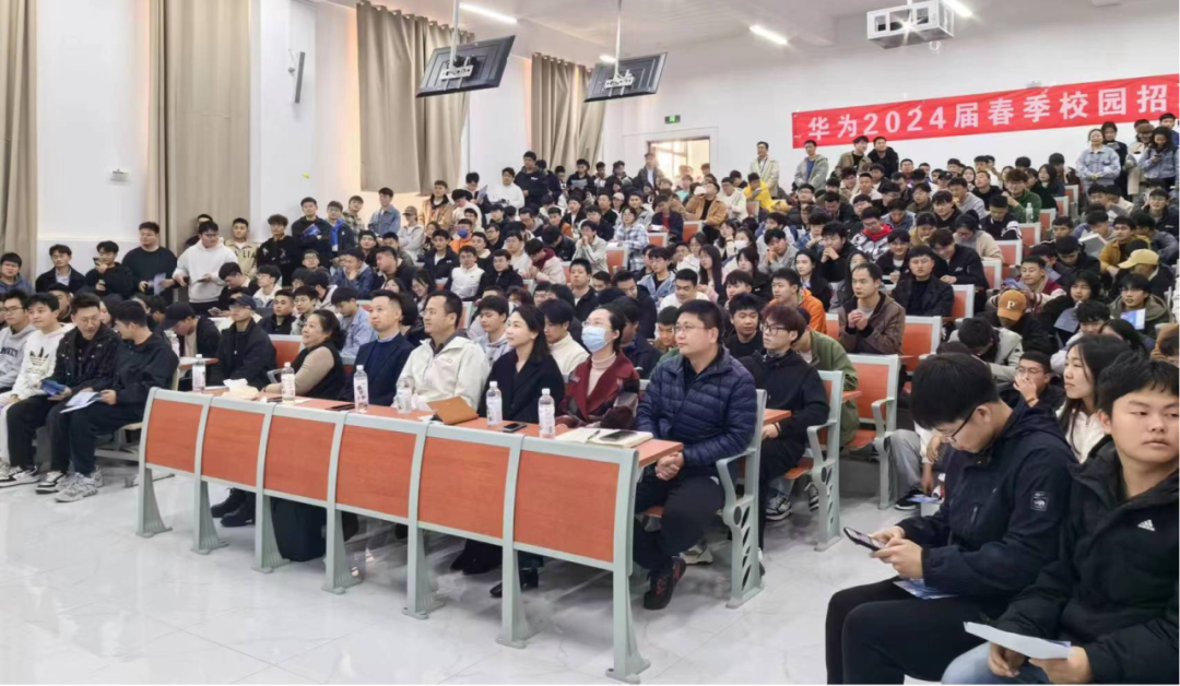 招聘会上,金敏部长致辞,感谢华为公司对我校就业工作的大力支持。鼓励学子积极抢抓机遇,充分展现自己,加入优秀企业,为民族复兴贡献青春力量。李金平部长介绍了华为的企业理念与文化、公司业务、产品体系、岗位详情、人才发展、薪资待遇等,并对2024年度招聘需求和招聘流程做了详尽解读。
