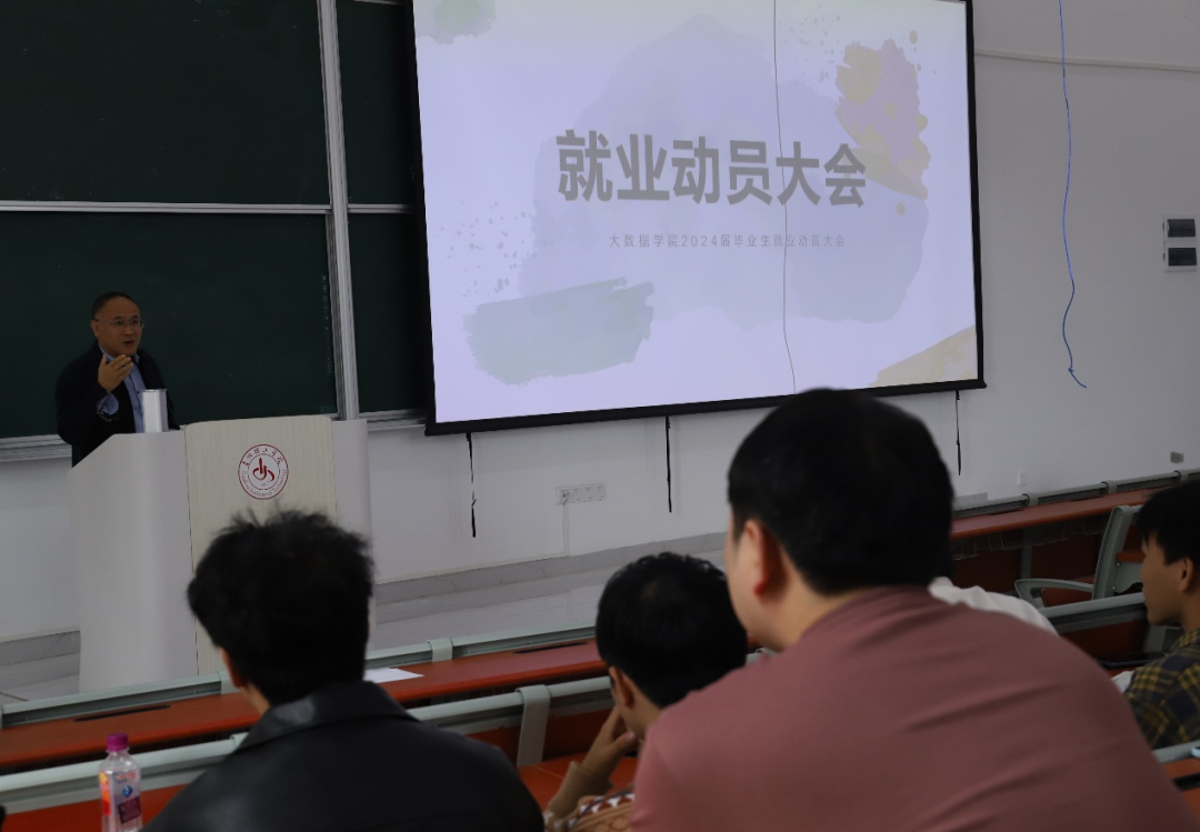 肖迎群院长向大数据学子介绍了我院每年毕业人数与就业人数的比例,强调就业宜早不宜迟,鼓励大家积极就业,引导学生树立“先就业,再择业”的正确就业观。