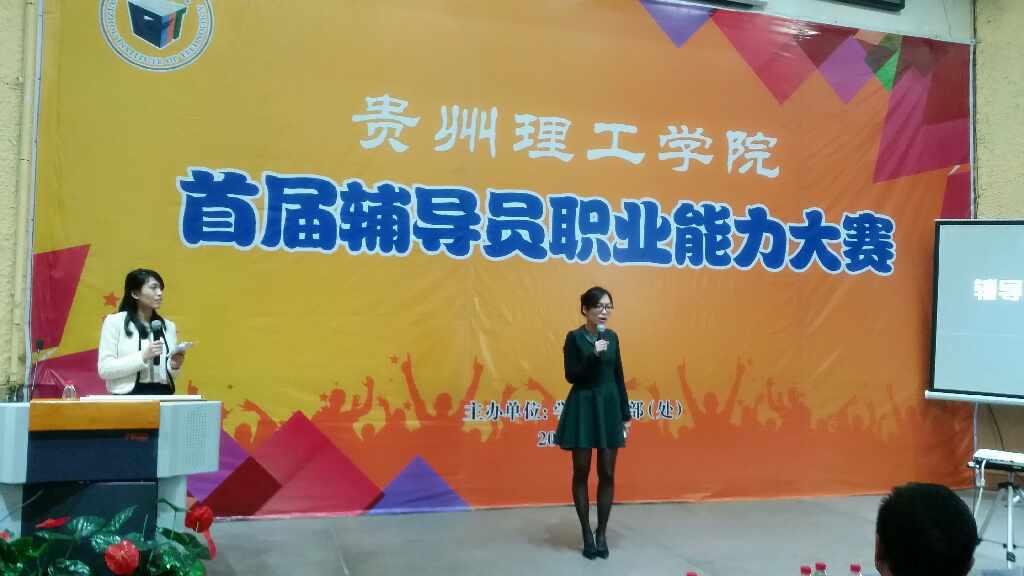 本网讯(曾标 供稿)为进一步加强学校辅导员队伍建设,全面提升辅导员整体素质,3月18日下午,学生工作部在逸夫小报告厅举办了“贵州理工学院首届辅导员职业能力大赛”。校长龙奋杰出席大赛并致辞,省教育厅学生处处长邓生井和五所兄弟高校学生处处长应邀担任比赛评委。我校部分老师和学生参加。