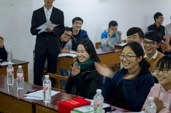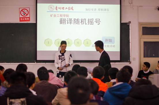 为激发学生的学习兴趣,比赛特别邀请了来自我校化工学院、经管学院、矿业学院等7位英语成绩优异的同学担任评委,这些学长学姐不仅传授给同学们比赛技巧,还与同学们分享了四六级考试的经验,鼓励同学们鼓起勇气,“今天的你们有勇气走上舞台,明天的英语四级对你们来说就是一碟小菜”。