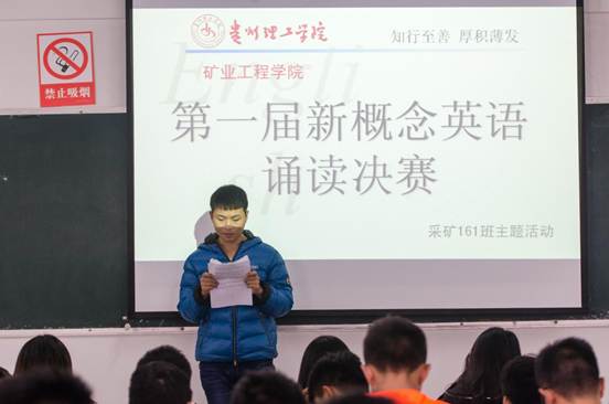 这次比赛是矿业工程学院采矿161班开展的第一届新概念英语诵读比赛,比赛于12月1日进行决赛,最终,常蒙同学获得一等奖,另有5名同学获得二、三等奖。