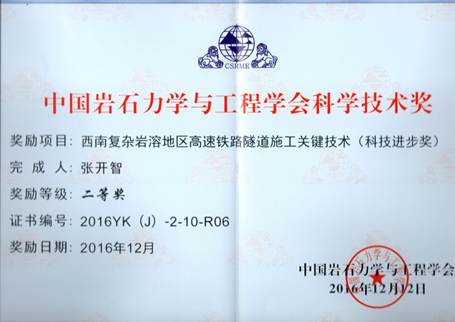 张开智教授获中国岩石力学与工程学会科技进步奖二等奖