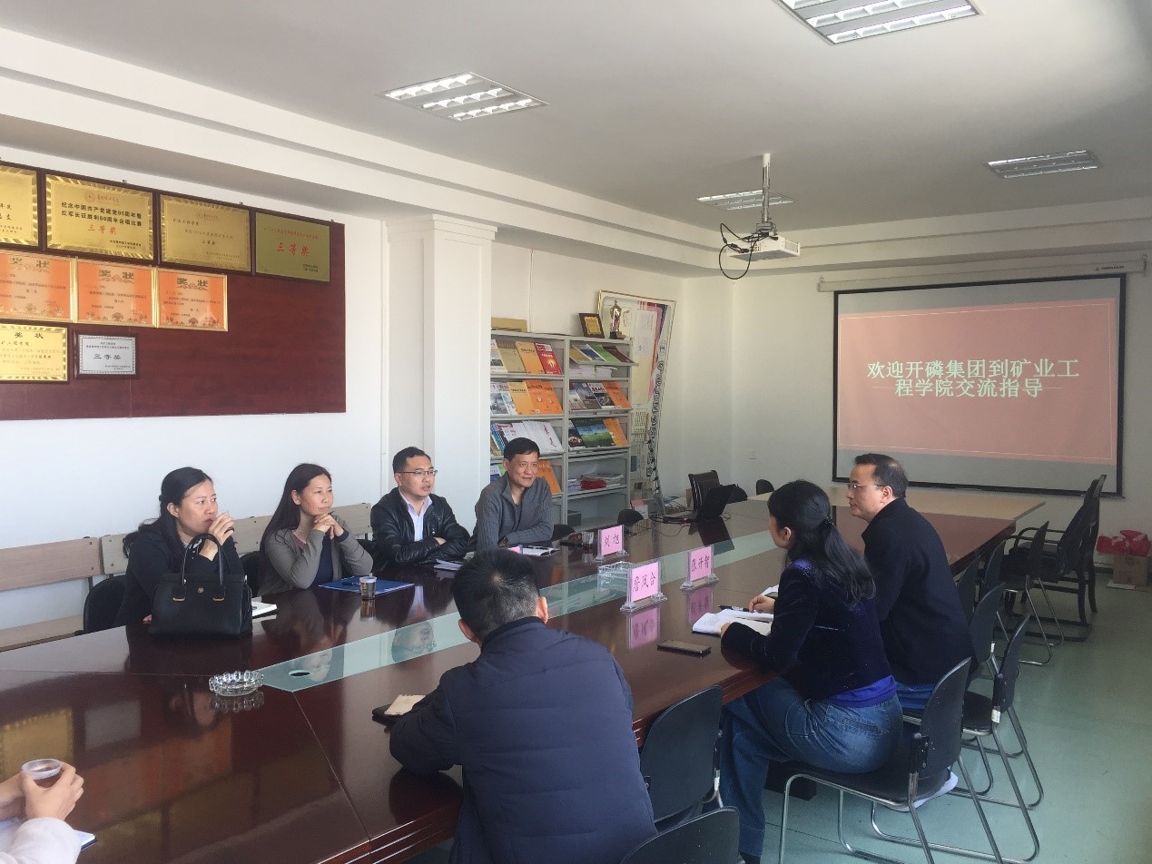 本网讯(矿业工程学院 魏玮) 3月14日,贵州开磷有限责任公司工会主席刘旭、人事部长谌立春等一行来我院进行工作交流,学院党总支书记詹凤合、院长张开智、徐佑林博士等与客人一行进行了座谈,双方着重就毕业生就业、学生实习、科技合作、人才交流等情况进行了洽谈沟通。