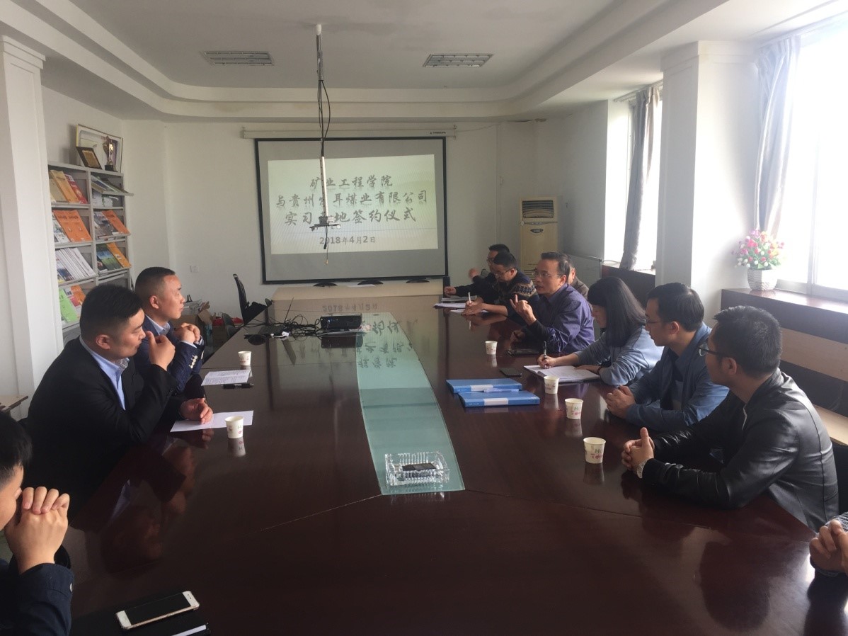 本网讯(矿业工程学院 魏玮) 矿业工程学院与贵州发耳煤业有限公司正式签订实习基地协议,4月2日下午,双方举行签约仪式并进行了座谈。