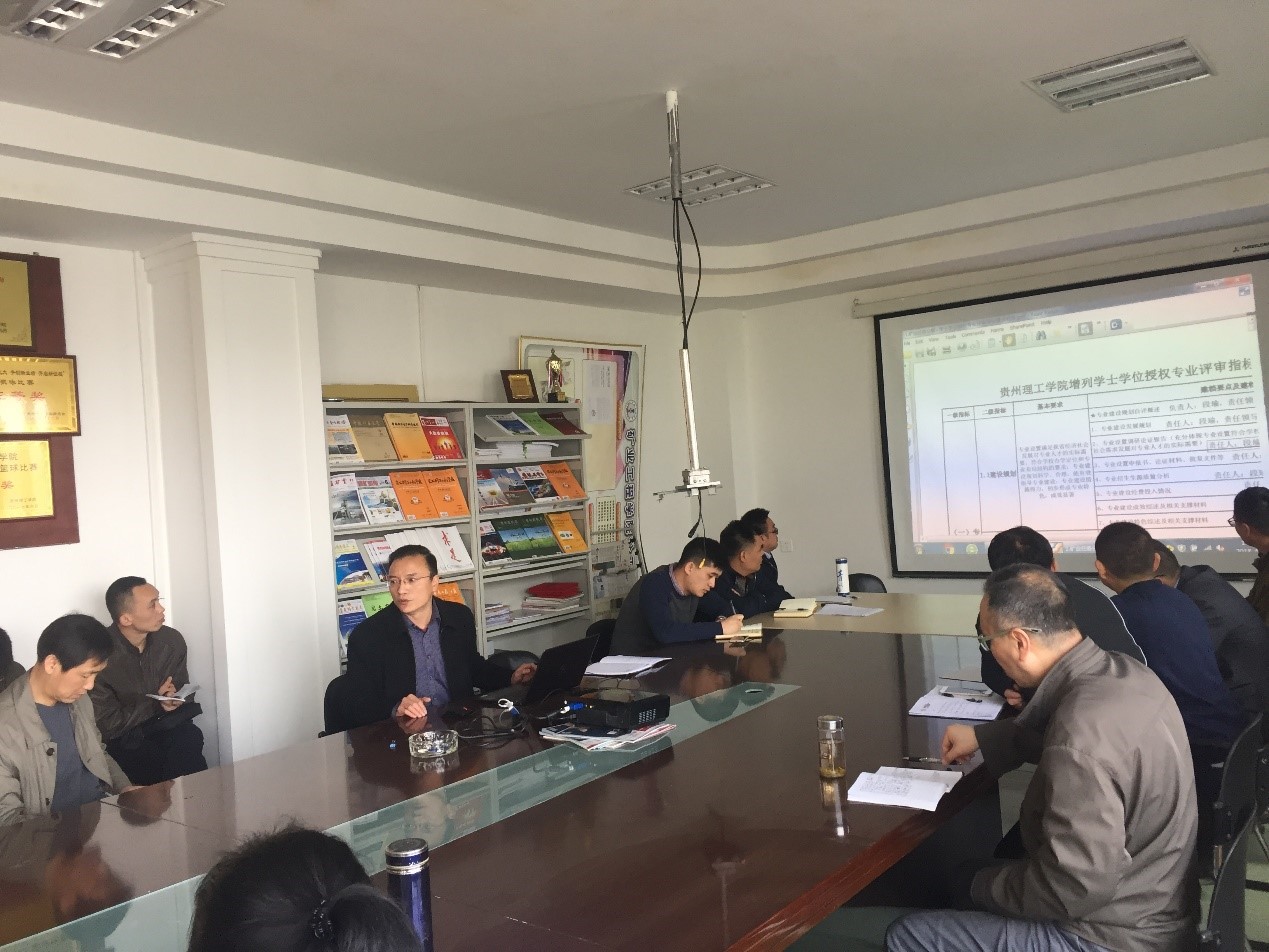 会上传达了学校《关于印发<进一步推进本科教学工作合格评估建设工作方案>的通知》(贵理工党发〔2018〕9号)文件精神和3月30日学校召开的合格评估建设工作推进会议精神。党总支书记詹凤合要求学院各部门务必加快落实本科教学合格评建工作,做到人人参与、人人有责,不留盲区、不留死角,进一步明确工作责任、完成时限和工作任务,及时做好“三落实”、“三明确”的任务分解和工作部署,确保我院相关工作稳步推进,为学校本科合格评建工作助好力、服好务、添好瓦。