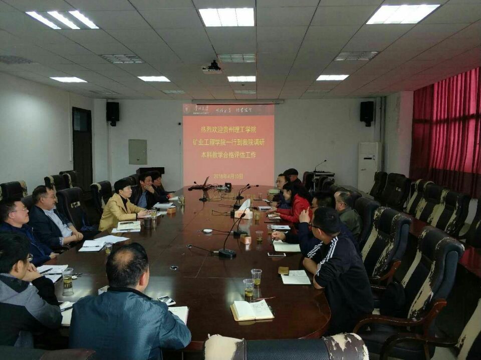 本网讯(李海军 供稿)4月10日,矿业工程学院詹凤合书记、张开智院长、马林联副院长、安全工程教研室主任刘雪岭副教授、采矿工程教研室主任许猛堂副教授、矿业工程实验中心主任穆静强高级实验师、学生科副科长吴园园副教授、教学科研科副科长李海军副教授一行8人赴贵州大学矿业工程学院就本科合格评估指标:办学思路与领导作用、教师队伍、教学条件与利用、专业与课程建设、质量管理、学风建设与学生指导、教学质量等合格指标建设与评估管理进行了全面考察调研和深度学习。