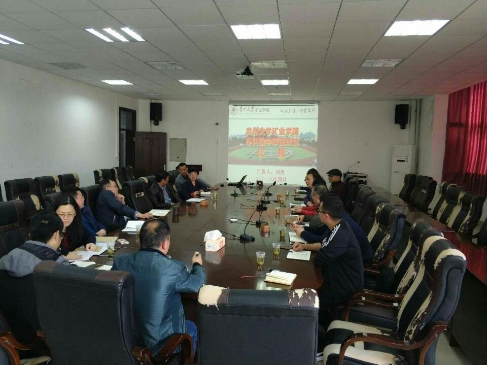 贵州大学矿业学院院长刘勇教授向调研组介绍了本科教学合格评估评建工作经验,并深度解析每一个评估指标建设过程中的典型做法和经验,详细剖析了评估指标的内涵和外延,分享整个评建过程的艰难困苦历程和收获成果。会上,贵州大学矿业学院张杰书记、潘琪副书记、左宇军副院长、唐云院长助理、杜宁教学科研科科长、吴桂义采矿工程教研室主任、江泽标安全工程教研室主任分别就各自分管工作做了专项指导与交流。会上,调研组通过学习、吸收消化贵州大学矿业学院本科合格评估评建工作的宝贵经验,为我院本科合格评估评建工作奠定了坚实的基础,更好地运用好“借道超车”的工作经验。