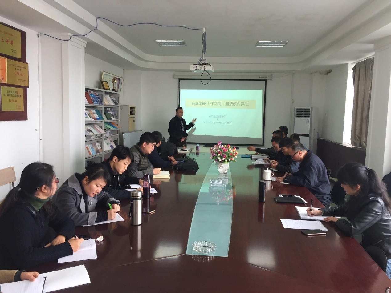 (本网讯 矿业工程学院 魏玮)11月28日上午,我院召开以“以饱满的热情,迎接校内合格评估”为主题的本科合格评估专题工作会议,研究部署近期本科教学合格评估专项工作。会议由张开智院长主持,全院老师参加。