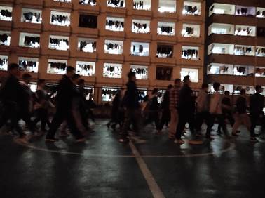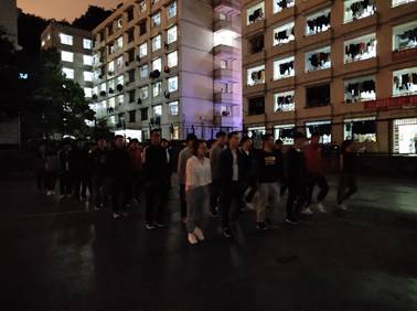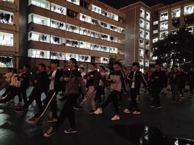 训练之初,队形虽然有些不齐,步伐虽然有些零乱,尚未达到大家预想的效果,但同学们从未松懈。夜里,吹着冷风,同学们依然坚持训练,他们心中的想法质朴而简单:付出自己的真心,凝聚大家的力量,跨越生疏走向成熟,践行理工精神、矿业精神,为校庆、为迎评,做出自己的一份努力。