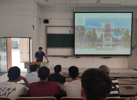 本网讯(矿业工程学院 马佳奇 林盼) 为帮助2019级新生尽快了解学校,适应大学生活,尽快完成由中学生到大学生的角色转变,9月15日 下午,学院在贵安校区组织召开2019级新生入学教育大会。院领导詹凤合、邵芳、马林联、王庆出席会议,全院教师及2019级新生参加会议。