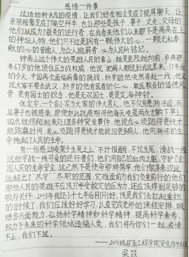 同学们还通过人民网、新华网等新闻网站学习疫情防控中涌现的先进人物先进事迹,对一线医护工作人员为本次战“疫”所作出的巨大贡献表示敬佩,纷纷表示要以他们为榜样,发扬勤奋勇敢、迎难而上的奋斗精神。