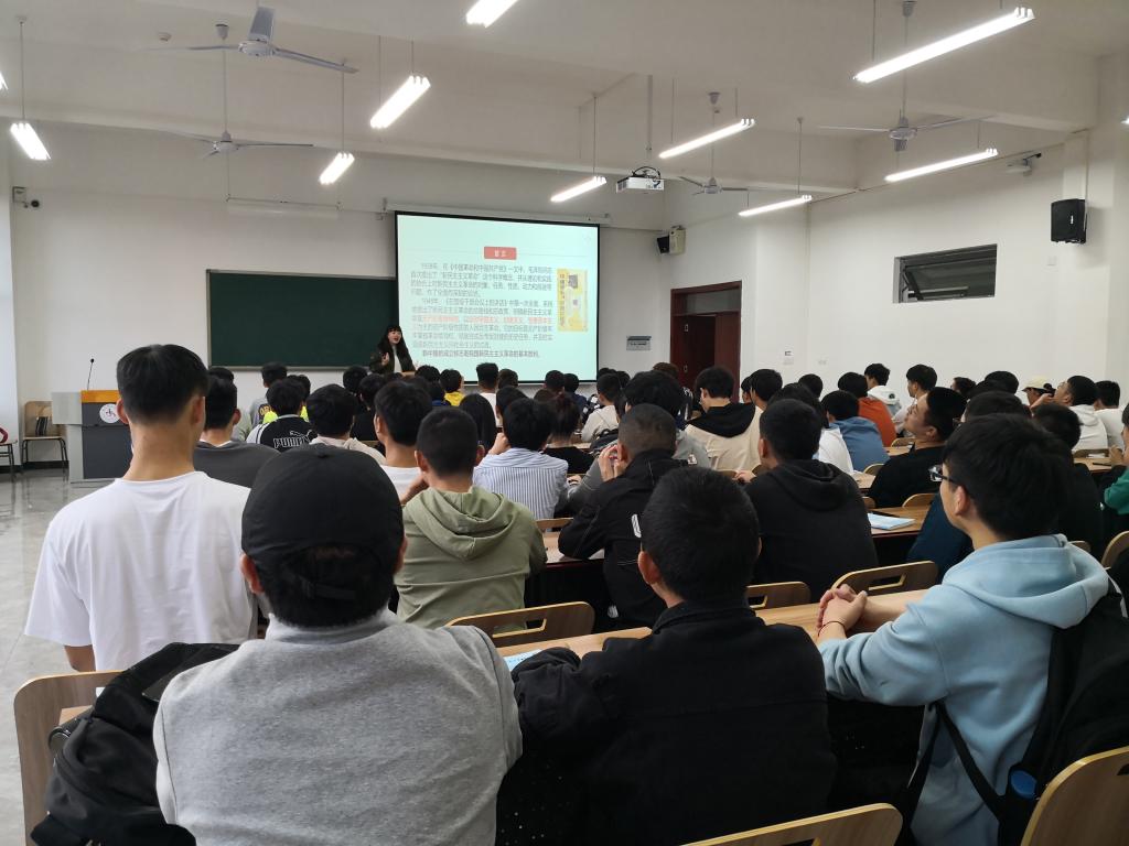 学院党总支书记詹凤合以“一首红色歌曲、一个红色故事、一种红色精神”的方式,为同学们带来以《我的祖国》为题的主题宣讲,从歌曲《我的祖国》和电影《上甘岭》入手,带领同学们一起回顾上甘岭战役的艰苦和悲壮,追寻抗美援朝那段英雄记忆,感悟“抗美援朝精神”的丰富内涵和时代价值,使同学们对上甘岭战役,对抗美援朝,对抗美援朝精神所蕴含的爱国主义精神、革命英雄主义精神、革命乐观主义精神、革命忠诚精神、国际主义精神有了更加深刻的了解和认识,激励和鼓舞同学们不惧困难,站在新时代的起点上,开创更加美好的未来。她还向同学们传达了习近平总书记在清华大学考察时对广大青年提出的殷切期望,希望同学们牢记总书记嘱托,从党史学习中激发信仰、获得启发、汲取力量,不断坚定“四个自信”,不断增强做中国人的志气、骨气、底气,实学实干,在攀登知识高峰中追求卓越,在肩负时代重任时行胜于言,在真刀真枪的实干中成就一番事业。