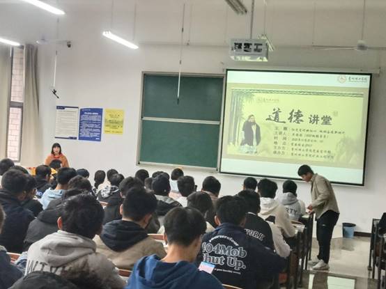 本网讯(明玉龙/文 汪东永/图) 2021年10月21日下午,矿业工程学院在贵安校区G1107教室组织开展主题为《红色宣讲映初心,砥砺奋进新时代》的道德讲堂,学院80名2021级新生聆听宣讲。