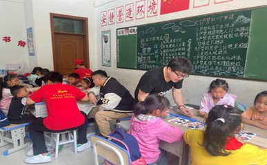 5月6日,指导老师王雪嫣带领学生团队前往息烽县南新学校,走入乡村课堂,以手工拼图为载体,融入中国传统故事讲述,用这种方式向该校学生推广普及国家通用语言文字,在培养小学生动手能力的同时,引导孩子们学习中华优秀传统文化,厚植爱国情怀,讲好中国故事。