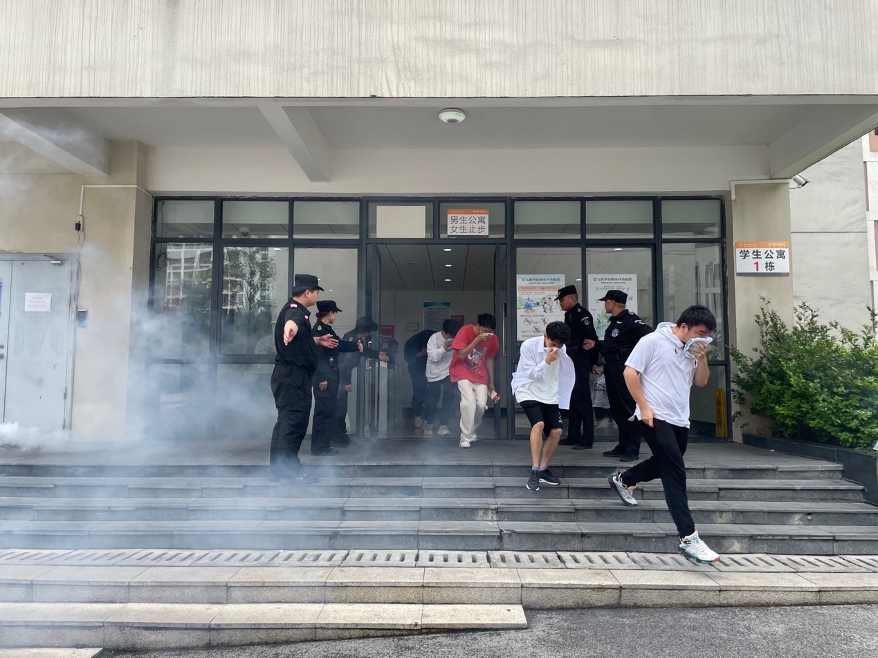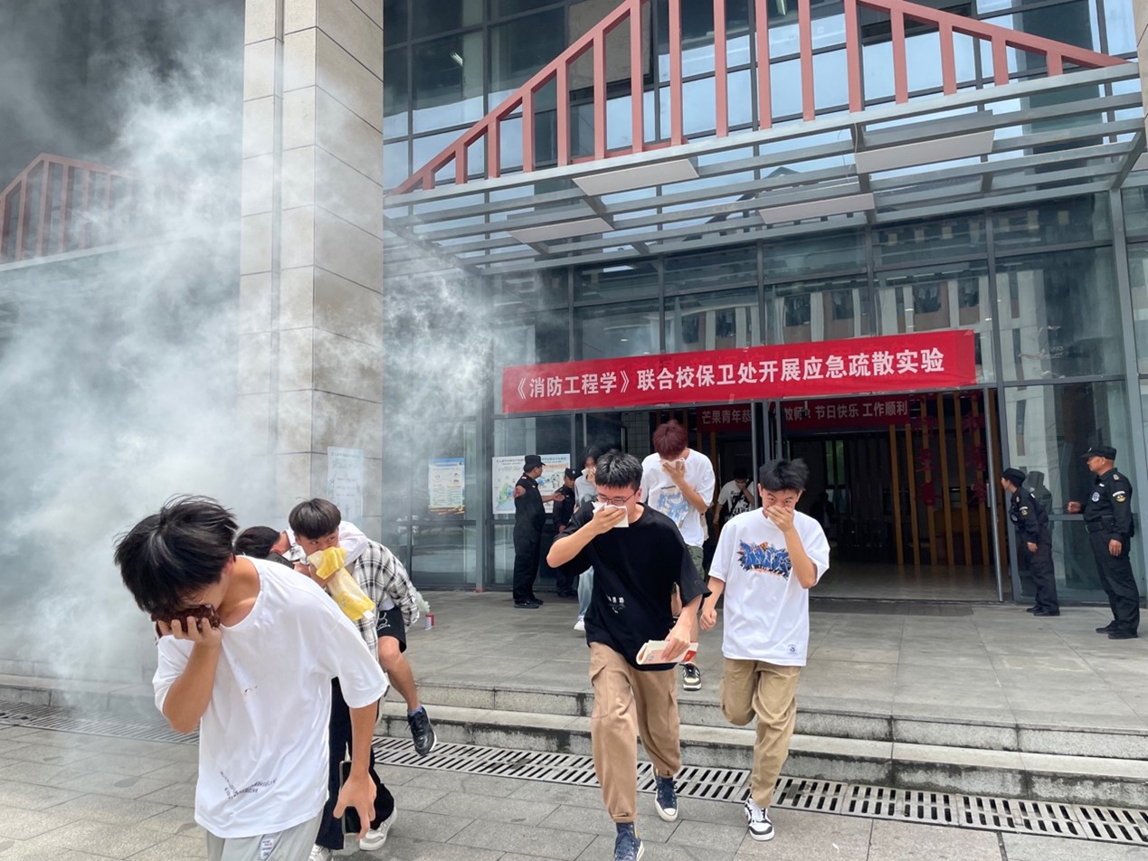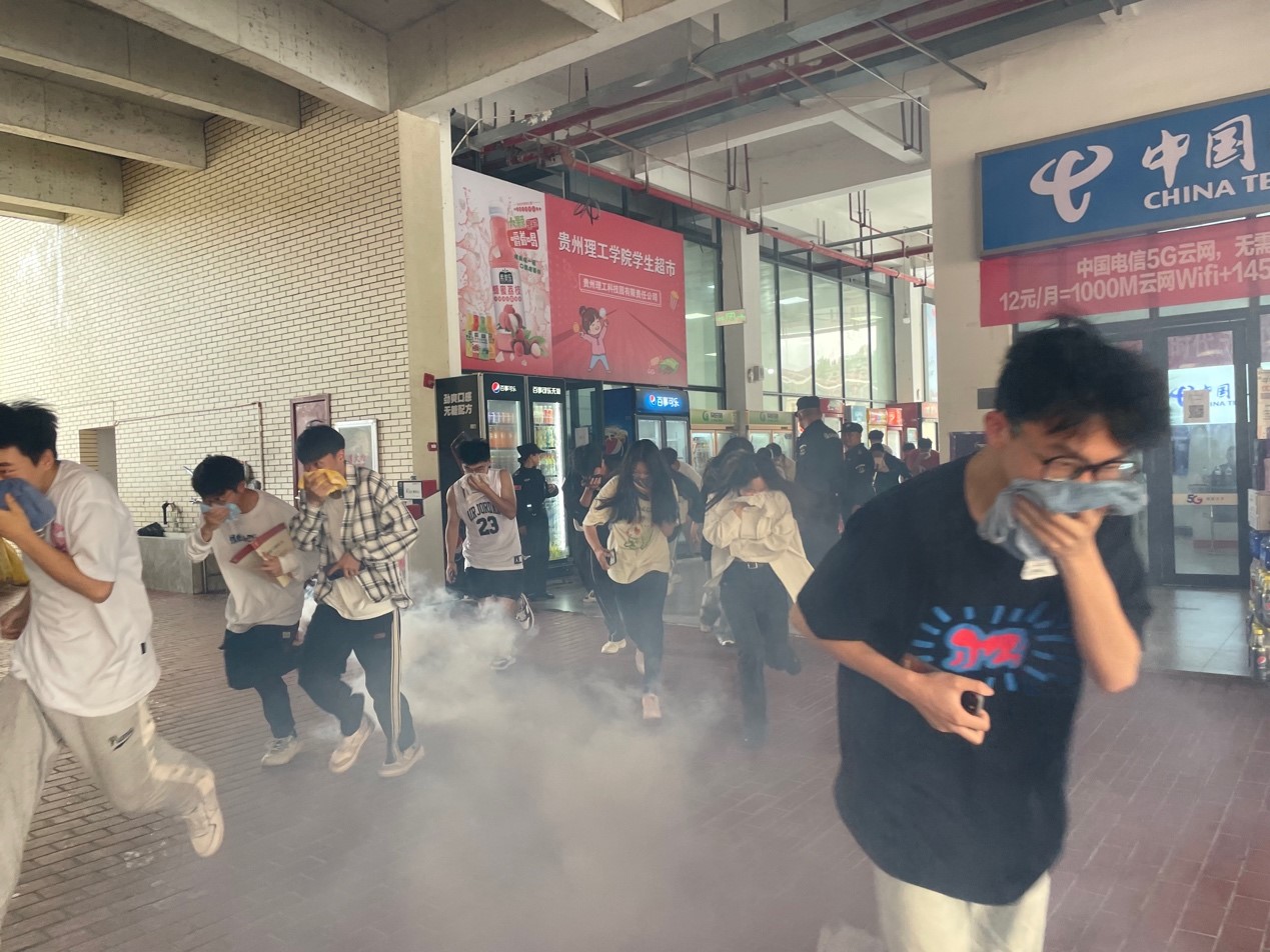 活动在贵安校区开物楼、食堂、一号公寓和校内商铺等4个地点开展。活动前,保卫处及王致嫣老师对全体学生进行了应急逃生注意事项说明,并进行了相关实验布置。保卫处工作人员在实验地点模拟释放烟雾并拉响警报,按照制定的预案迅速组织学生疏散逃生。学生用湿毛巾捂住口、鼻,按照应急疏散指示标识和既定的应急疏散路线,安全有序地疏散到楼外安全区域。