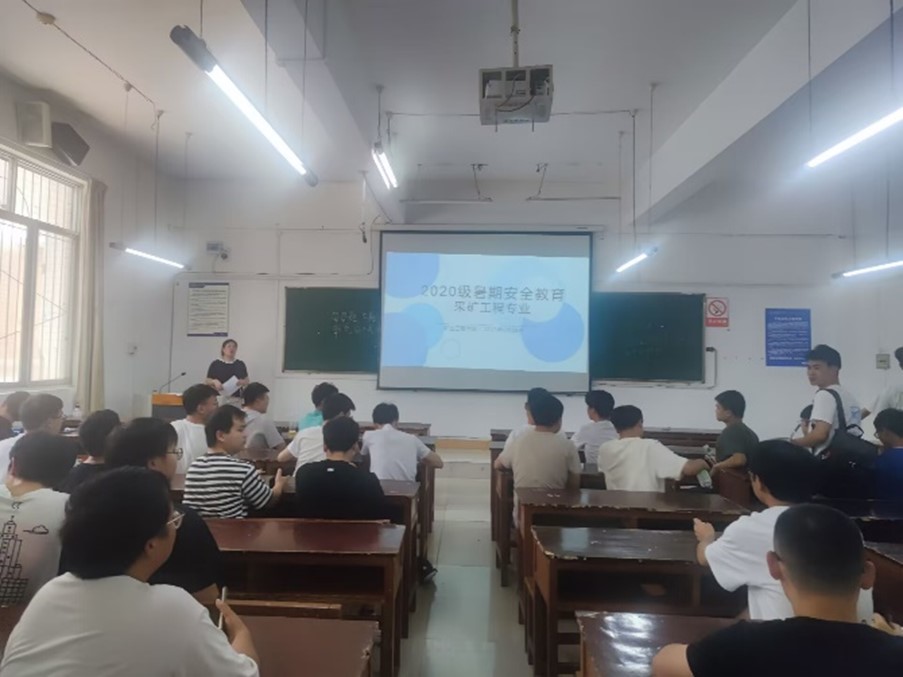本网讯(潘昌文 舒春阳/文 常永康/图) 暑假在即,矿业工程学院进一步加强学生安全教育,2023年6月28日,组织2020级学生在蔡家关校区第三教学楼召开暑期安全教育主题班会。