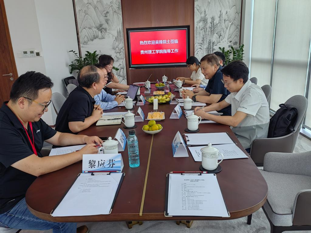 随行的北京理工大学材料学院副院长吴川介绍了北京理工大学材料学院概况和吴锋院士团队在新型二次电池与相关能源材料方面的研究成果及未来发展方向;材料与能源工程学院党总支书记潘健林介绍材料与能源工程学院概况,罗大军博士汇报贵州新能源动力电池及材料研发和生产情况。