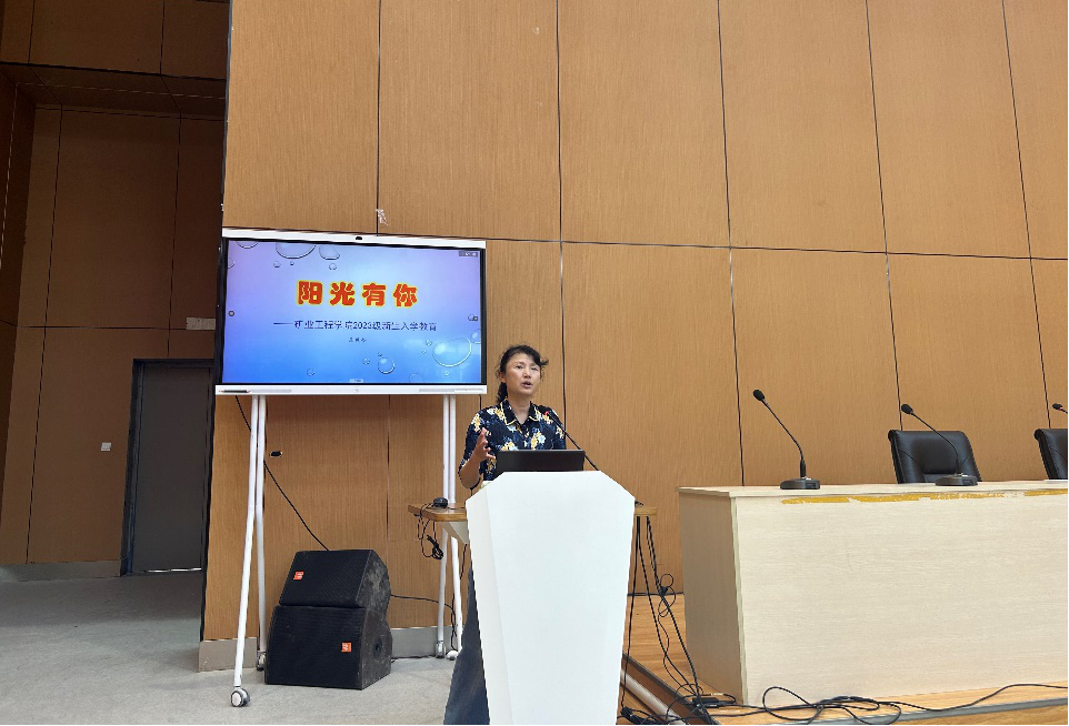 党总支书记詹凤合代表学院对2023级新生的到来表示欢迎,她以《 阳光有你》为题,为同学们作思想政治和入党启蒙教育,结合大学实际和大学生特点,从阳光心态、阳光学习、阳光生活等三个方面,对同学们进行提醒和引导,勉励同学们培养和保持良好的身心状态,快乐学习、快乐生活、快乐工作,度过充实、有意义的大学四年。