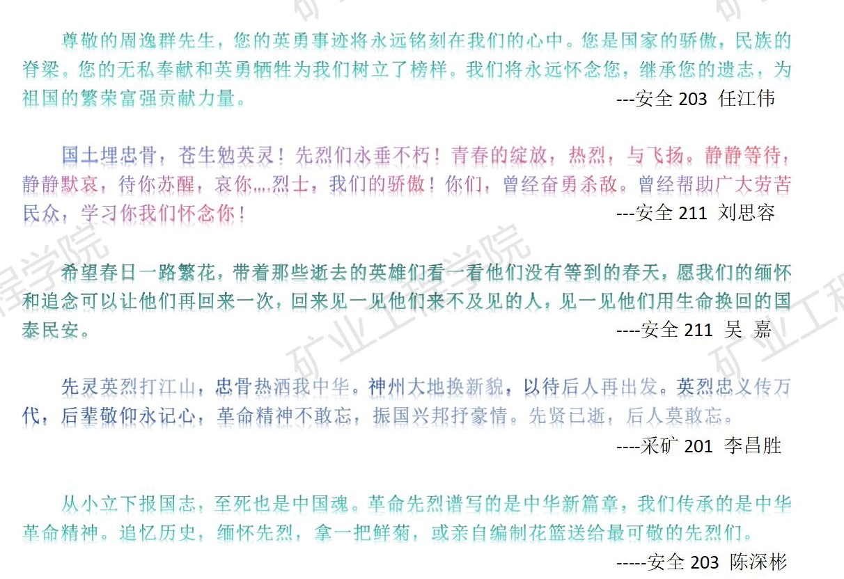 本网讯(陈杰/文 李玉云/图) 2024年4月1日至6日,矿业工程学院组织开展主题为“缅怀先烈传薪火 不忘初心向未来”的网络祭英烈活动。