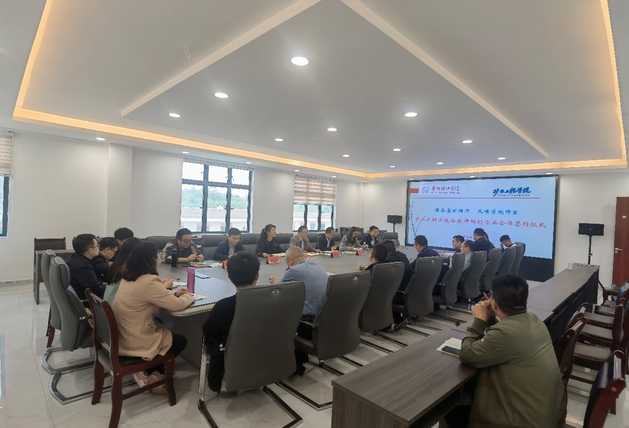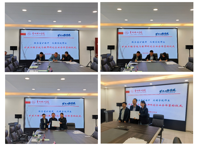 矿业工程学院教师积极发挥学科专业优势,创办科技创新服务企业,活跃在矿业、安全工作领域,服务地方和行业、企业发展。与此同时,始终不忘自己作为贵州理工学院教师的“第一身份”,反哺学院教学、科研、学生实习实训以及就业等工作。此次签约的贵州理工智矿科技有限公司、贵州致远工程技术咨询有限公司、贵州天越工程技术有限公司、贵州省煤安矿山科技有限公司/贵州省煤安技术服务有限公司等4家企业均为学院教师创办,已为学院教师到企业锻炼、技术研发创新、学生实习就业等提供多项帮助,共接收10余名贵州理工学院毕业生就业。