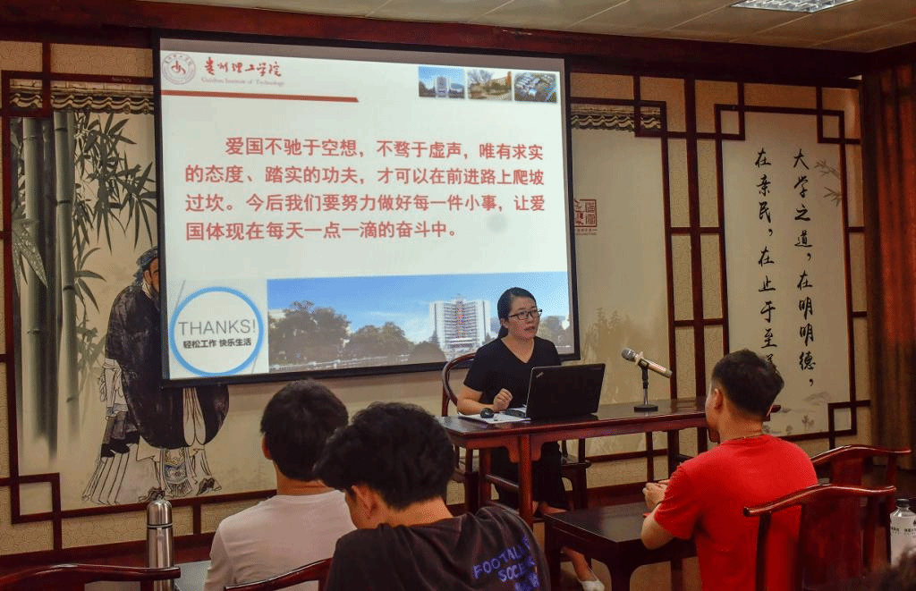 主讲人黄艳丽老师以红色歌曲《我和我的祖国》开题,唱响礼赞新中国、奋进新时代的青春主旋律,激励和引导同学们大力弘扬以爱国主义为核心的民族精神,把爱国奋斗精神转化为实际行动。黄老师强调,“爱国,是人世间最深层、最持久的情感,是一个人立德之源、立功之本”,并为同学们阐述了新时代弘扬爱国主义精神的四个维度,勉励同学们弘扬爱国主义情怀,坚定“四个自信”,努力朝着成为担当民族复兴大任的时代新人的方向茁壮成长。