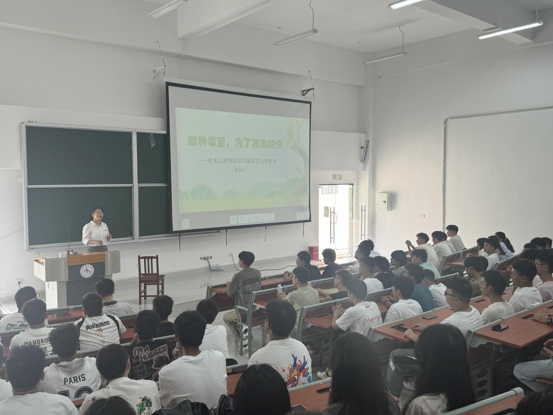 本网讯(罗洪露/文 刘胜益/图) 2024年8月30日,矿业工程学院党总支书记詹凤合、学生党支部书记王雪嫣在毓知楼118教室,面向学院2024级新生开展入党启蒙教育。