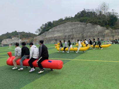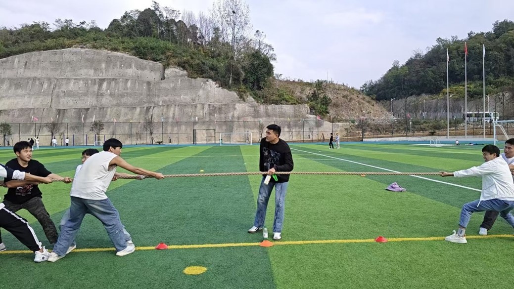 赛场上,加油声、欢呼声此起彼伏。在疯狂毛毛虫项目中,同学们化身“毛毛虫”,在赛道上蠕动前进,既体现了团队的协作,又不失有趣,引得观众捧腹欢笑;在跳绳接力赛中,摇绳的队员挥舞着充满力量的手臂,努力配合着跳绳选手的节奏,跳绳的师生们看准时机腾空跃起,身姿矫健充满活力;拔河比赛现场,各班队伍齐心协力,奋力拼搏,绳子向左向右牵动现场观众的心,比赛紧张激烈。值得一提的是,教师们在紧张的工作之余,走下讲台,加入到趣味比赛中,他们在跳绳、毛毛虫等项目中的精彩表现,展示了不同于平日讲台前教师形象的另一面风采,更拉近了师生之间的距离。