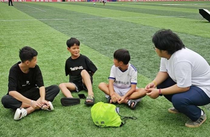 实践队还专程来到火爆全网的“村超”赛场,对一名球员兼教练的李先生进行了采访。李教练表示:“‘村超’的火爆正是民族团结的生动体现。我们的队员来自不同民族,却为了共同的足球梦想并肩作战;观众来自四面八方,因足球而欢聚一堂。这就是民族团结最真实的写照。”“足球是纽带,团结是底气”,14岁的年轻球员杨凯振这样说道。