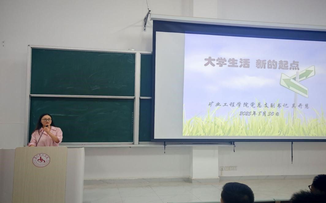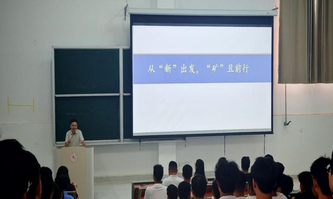 院长徐佑林以“从‘新’出发,‘矿’且前行”为题开展了爱校荣校教育和专业学科认知启蒙教育,为新生详细介绍了学校和学院的发展历程,深入浅出地讲解了专业方向及未来前景,强化新生对学校和学院的认同感与专业信心,引导学生在新起点上善于抓住“富矿精开”发展战略赋予的时代机遇,提高综合素养。