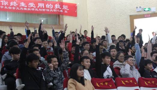 讲座邀请了校保卫处的鲍毅老师为同学们普及消防和逃生的有关知识,鲍毅老师还特别提醒同学们要高度重视校园面临的消防安全问题,比如:少数同学违规使用电器带来火灾隐患,对学生的生命财产安全构成威胁。主持人也在讲座中给同学们普及了有关消防安全常识,并现场教同学们如何正确使用灭火器以及生活中如何正确使用家用电器。讲座中还以有奖问答的形式充分调动同学们的活动积极性,寓教于乐地引导同学们更加关注消防安全。