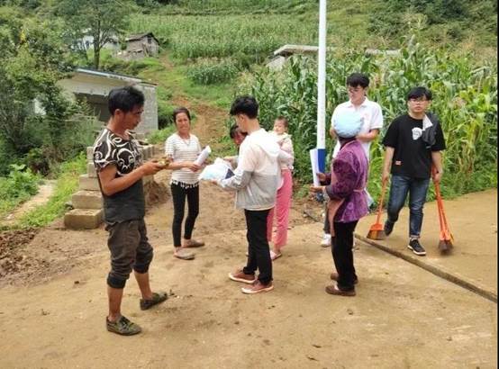 今天阳光炽热而暖人心,山路陡滑步履显得格外矫健,矿业小组在营兴村普及宣传防艾禁毒、环境卫生知识。