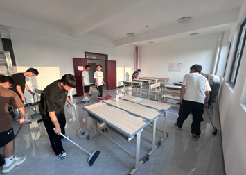 本网讯(罗洪露/文 刘胜益/图) 以实际行动服务师生,营造整洁、优美的校园学习生活环境,近日,矿业工程学院组织学生党员开展志愿服务活动,清扫H02-4四楼自习室、活动室、健身房以及H02-1一楼自习室。
