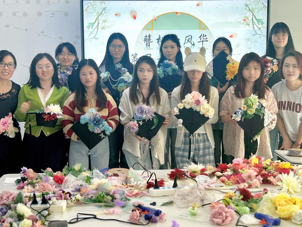活动现场准备了热熔胶、各类仿真花及装饰材料,在老师们的悉心指导下,同学们充分发挥创意,精心挑选各式材料,将四载芳华凝于指尖。当一顶顶绽放的"花冠"在镜头前闪耀,时光仿佛在这一刻变得柔软。这场小而美的活动,不仅让毕业生们收获了独一无二的毕业纪念,更让毕业季充满了诗意与温度。