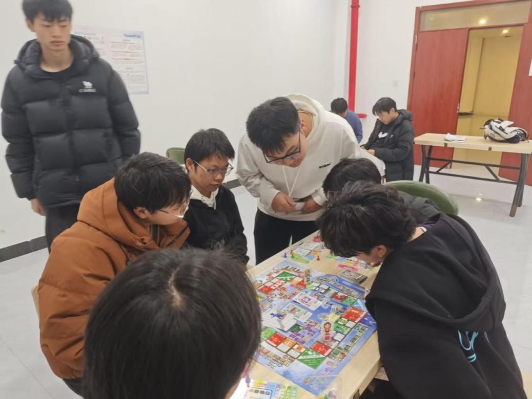 本次活动以“放松身心、以棋会友、增进融合”为宗旨,精心设置了狼人杀、三国杀、大富翁、剧本杀等多款热门桌游,兼顾策略性、协作性与娱乐性,满足不同兴趣同学的需求。活动现场气氛热烈,同学们自由组队、轮换体验,时而凝神思考,时而击掌欢呼,在轻松愉悦的氛围中拉近了彼此的距离。