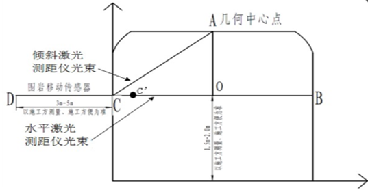 5.在C点水平安装一台围岩移动传感器,用于监测C点附近的围岩移动量。以修正因巷道变形导致的测量误差。