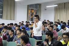 在交流会上,考研取得优异成绩的五位学长学姐从自身考研经历出发,围绕如何选取专业和院校、制定复习计划、调整心态以及复试中的注意事项等方面谈了自己的亲身体验和感受。考取哈尔滨工程大学的刘梦妍学姐强调独立思考的重要性,选取专业和院校时不能盲从,并建议同学们不要只局限于与考研专业相关的书籍,应多读不同类型的书,拓宽视野。考取哈工大的她用“勤奋”“计划”“心态”三个关键词总结自己的成功。她从“真题”、“笔记”等具体问题着手,叮嘱同学们要仔细研究真题题型,并要在大一大二奠定坚实的基础。以优异成绩考取中国科学院大学的吴鹏同学强调了复习要抓住整体脉络,要在理解的基础上背诵,并且应懂得取舍。考取西北工业大学和考取贵州大学的黄博威和曾泽云学长则重点分享了自己研究生入学考试中英语考试取得优异成绩的诀窍。