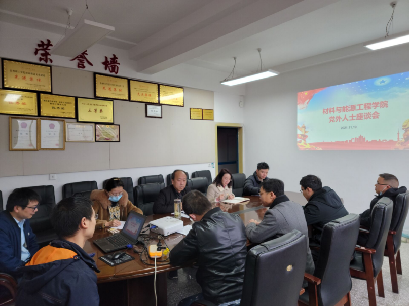 2021年11月19日上午10:00,材料与能源工程学院在802会议室召开党外人士座谈会,党总支书记潘健林参加会议,党外教师代表罗源、罗文波、罗勋、吴显、龙琼、朱阮利、陈小澄等参加座谈会,会议由学院副院长周登凤主持。